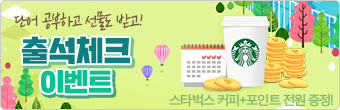 맥스보카와 함께 작심삼일 극복하고 푸짐한 상품 받아가세요~! 4일 연속 출석하면 스타벅스 아메리카노 증정!